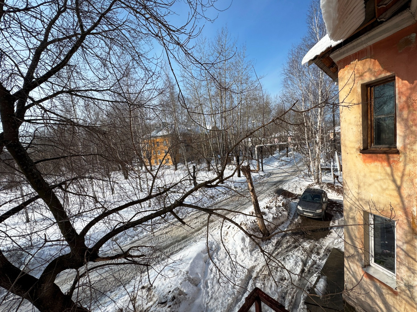 Окна выходят во двор, где отсутствует пыль и шум от дороги.
