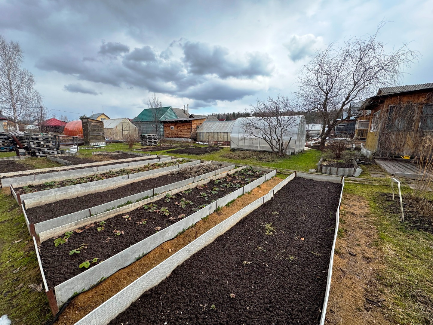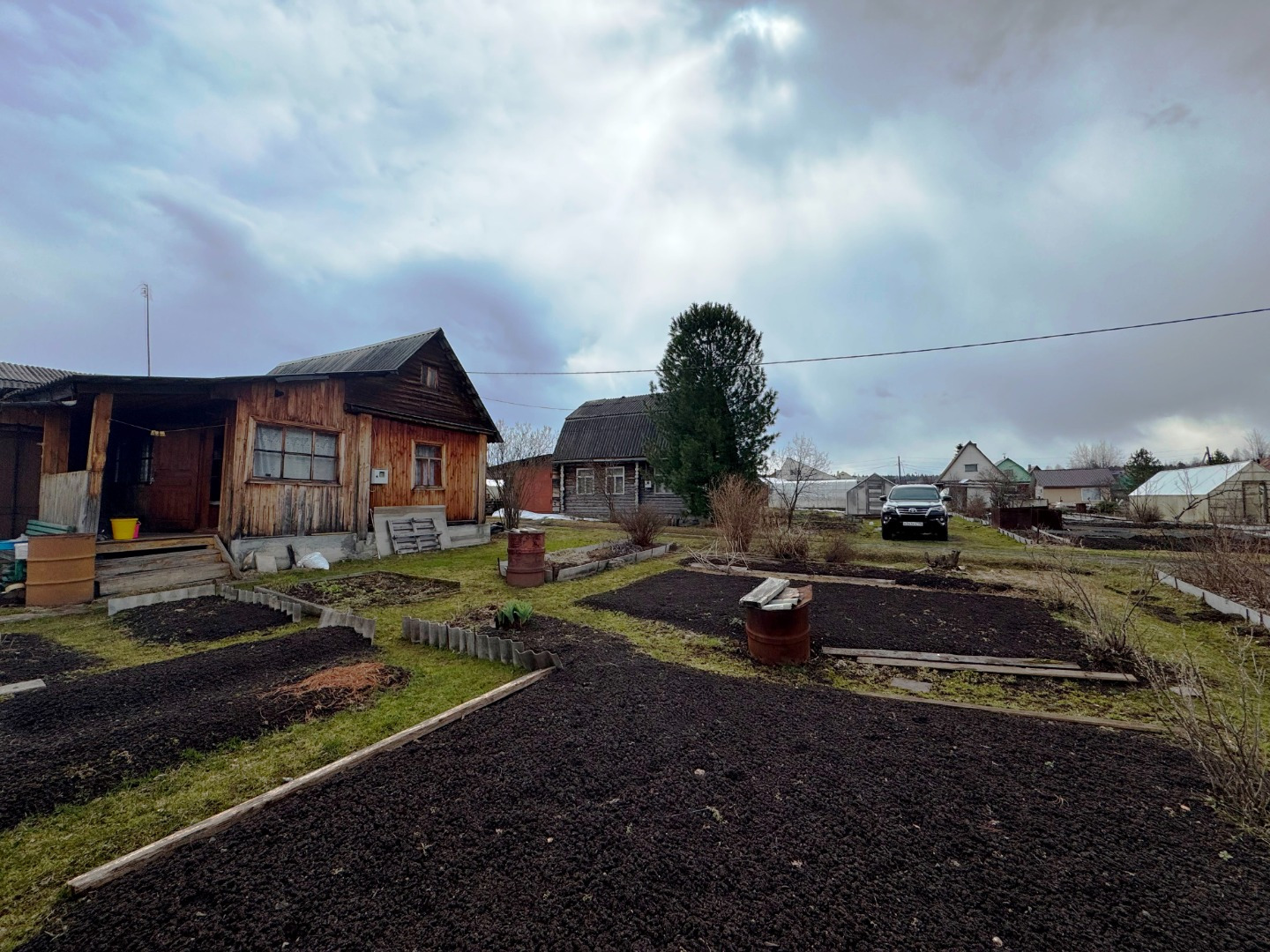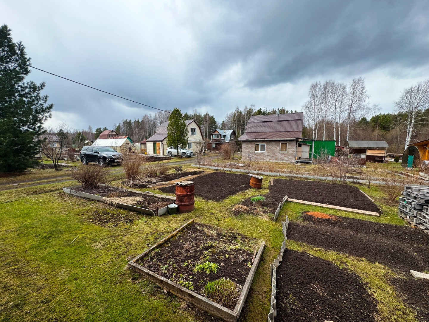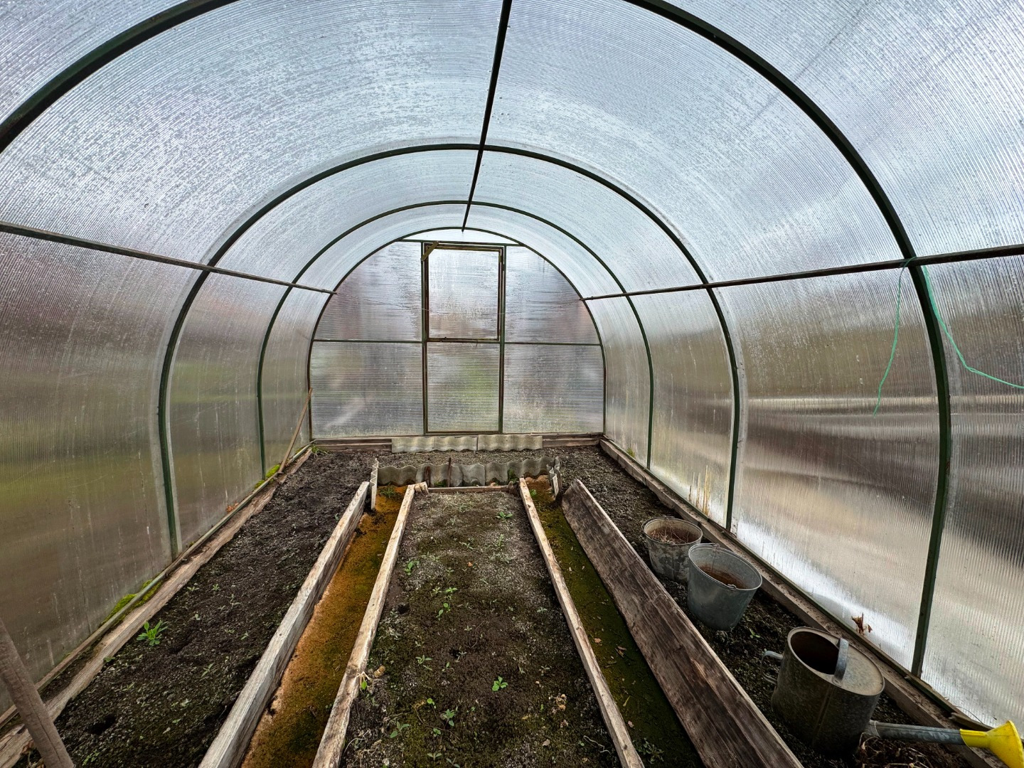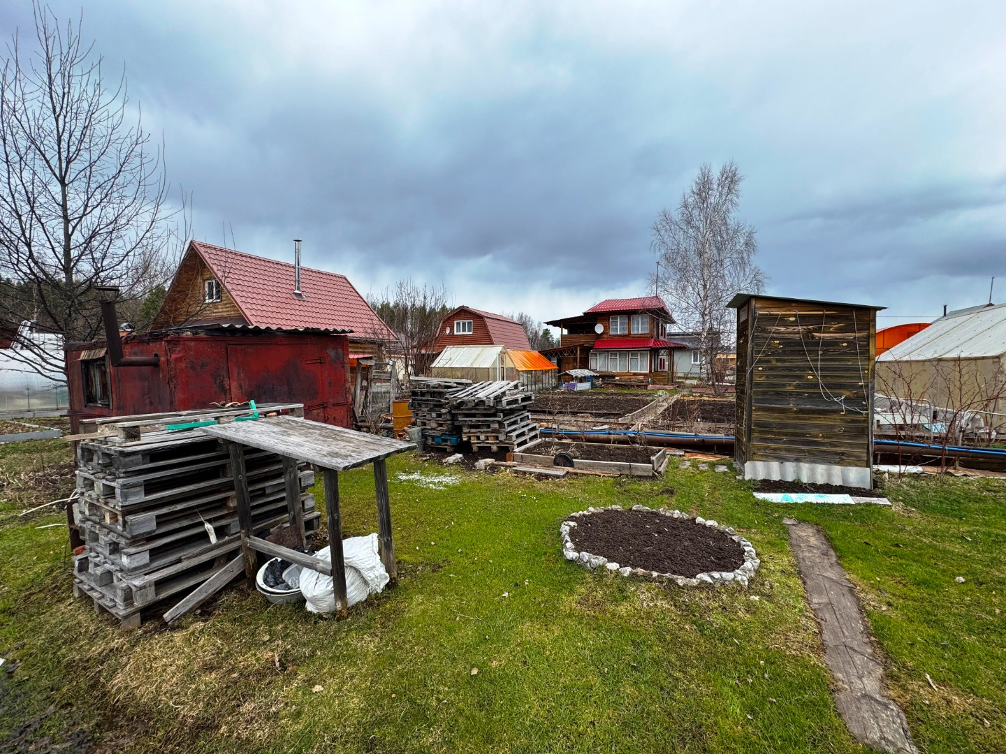 Участок по периметру не огорожен забором, но при желании можно огородить. Имеется две теплицы.